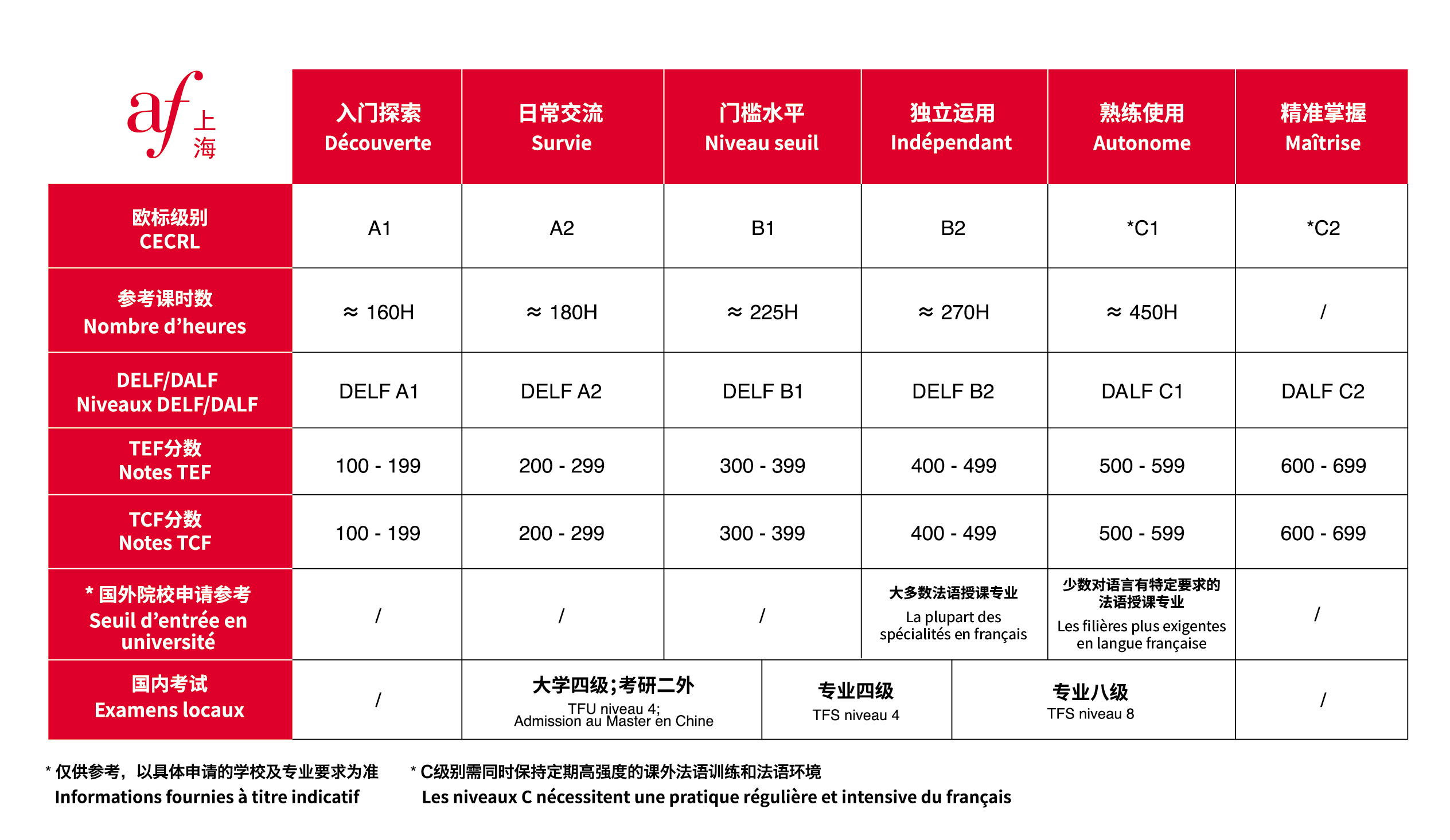 Parce que les Alliances françaises sont soucieuses d’accompagner les apprenants dans la construction de leur apprentissage, elles ont adopté les outils préconisés par le document de référence internationale dans le domaine de la didactique du Français Langue Étrangère : le Cadre Européen Commun de Référence pour les Langues (CECRL).